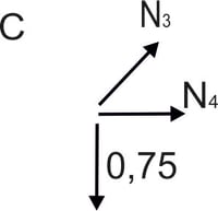 &\sum{Y}=0 & -\frac{3}{4}+N_3\cdot\frac{\sqrt{2}}{2}=0 \\ &\sum{X}=0 &N_4 +N_3\cdot\frac{\sqrt{2}}{2}=0 \\ &N_3=\frac{3\sqrt{2}}{4}\ kN \\ &N_4=-\frac{3}{4}\ kN \\